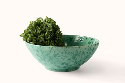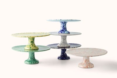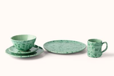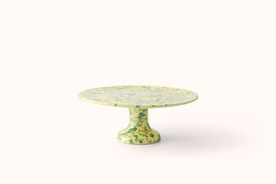 GREEN ON YELLOW SPLATTERWARE FRUIT/CAKE PLATE