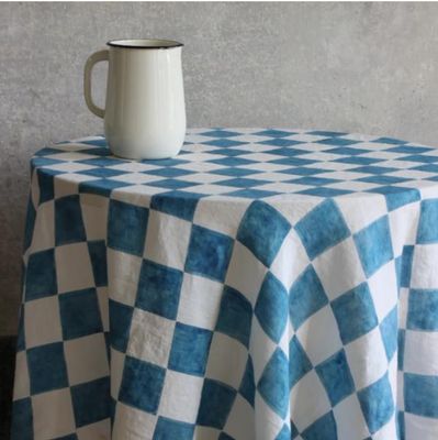 ONCE MILANO LINEN TABLECLOTH WITH CHESS PATTERN